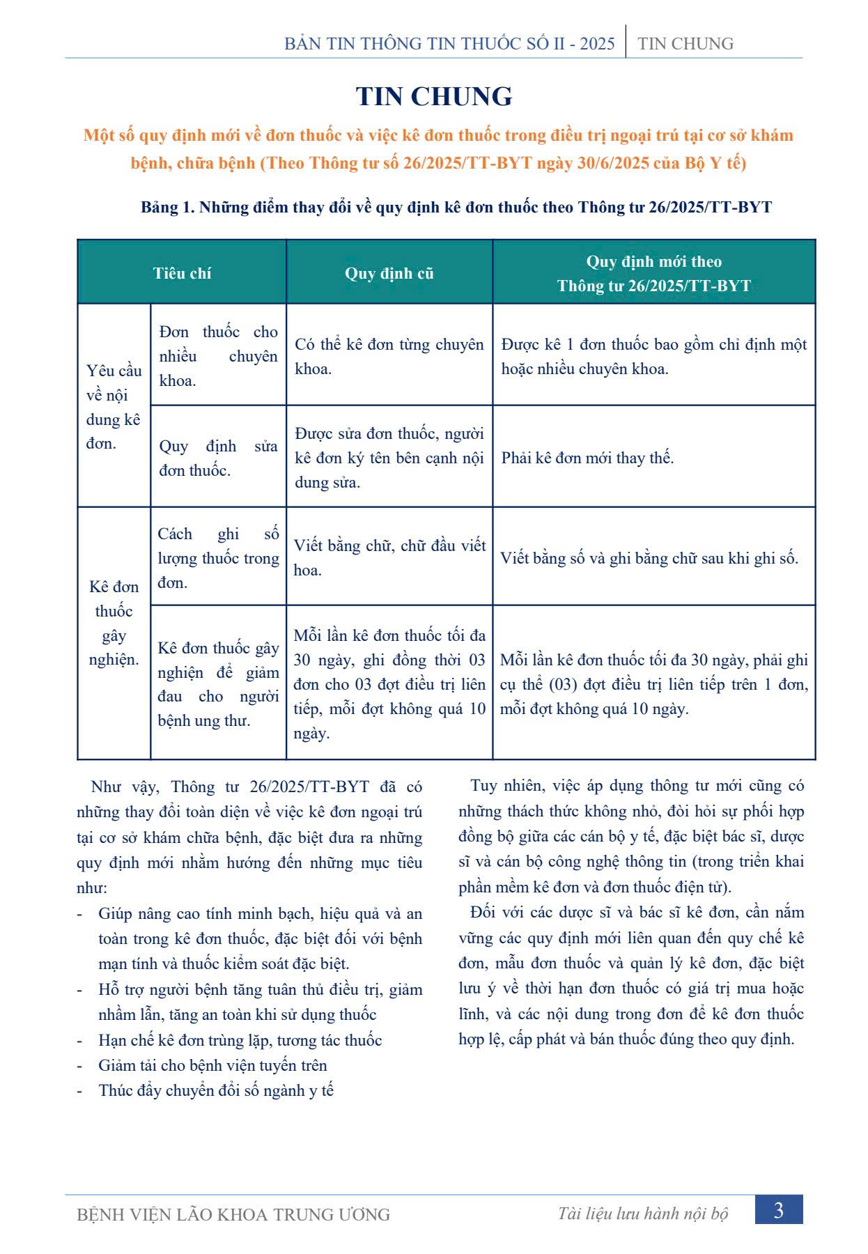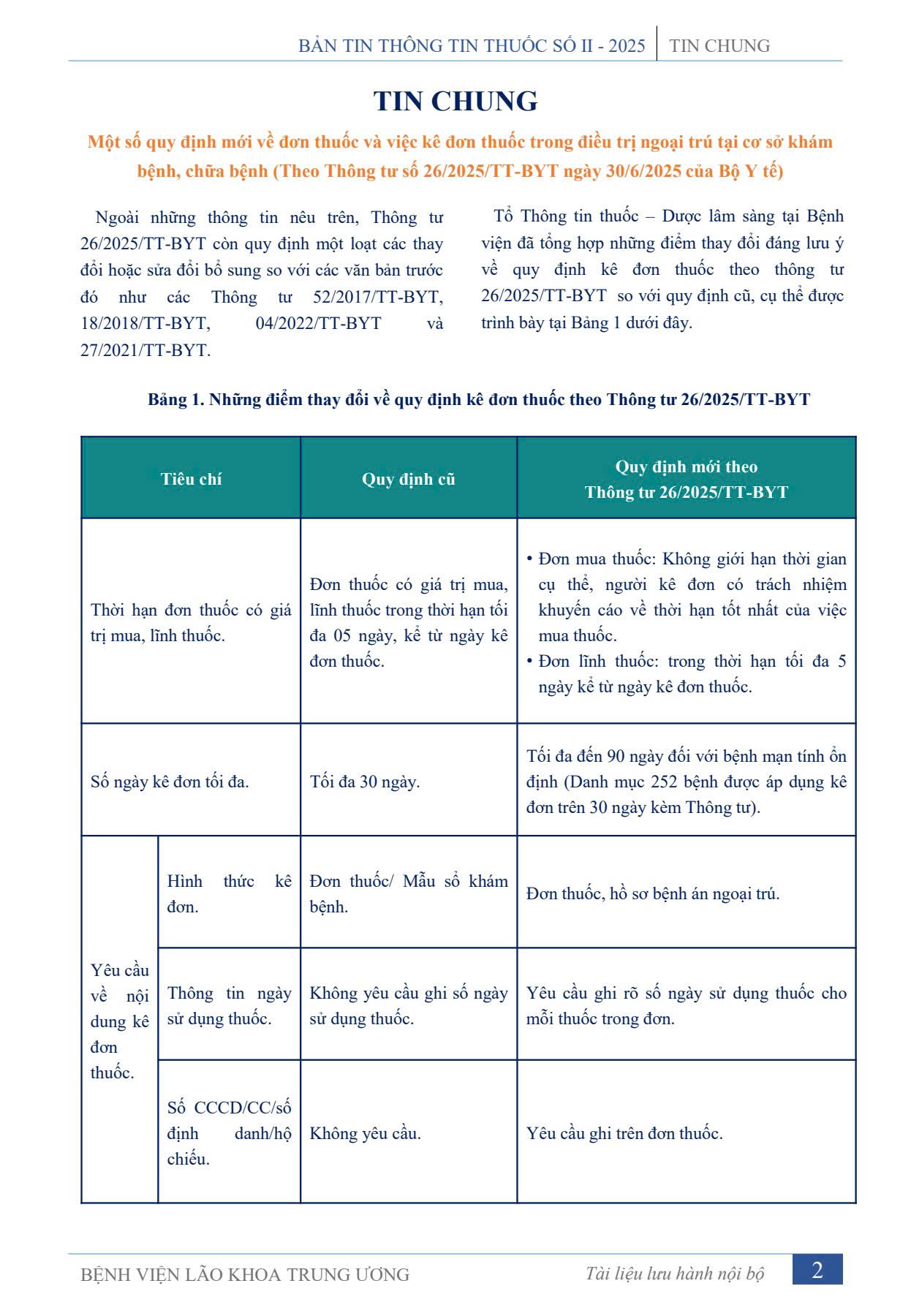 BẢN THÔNG TIN THUỐC SỐ II - 2025