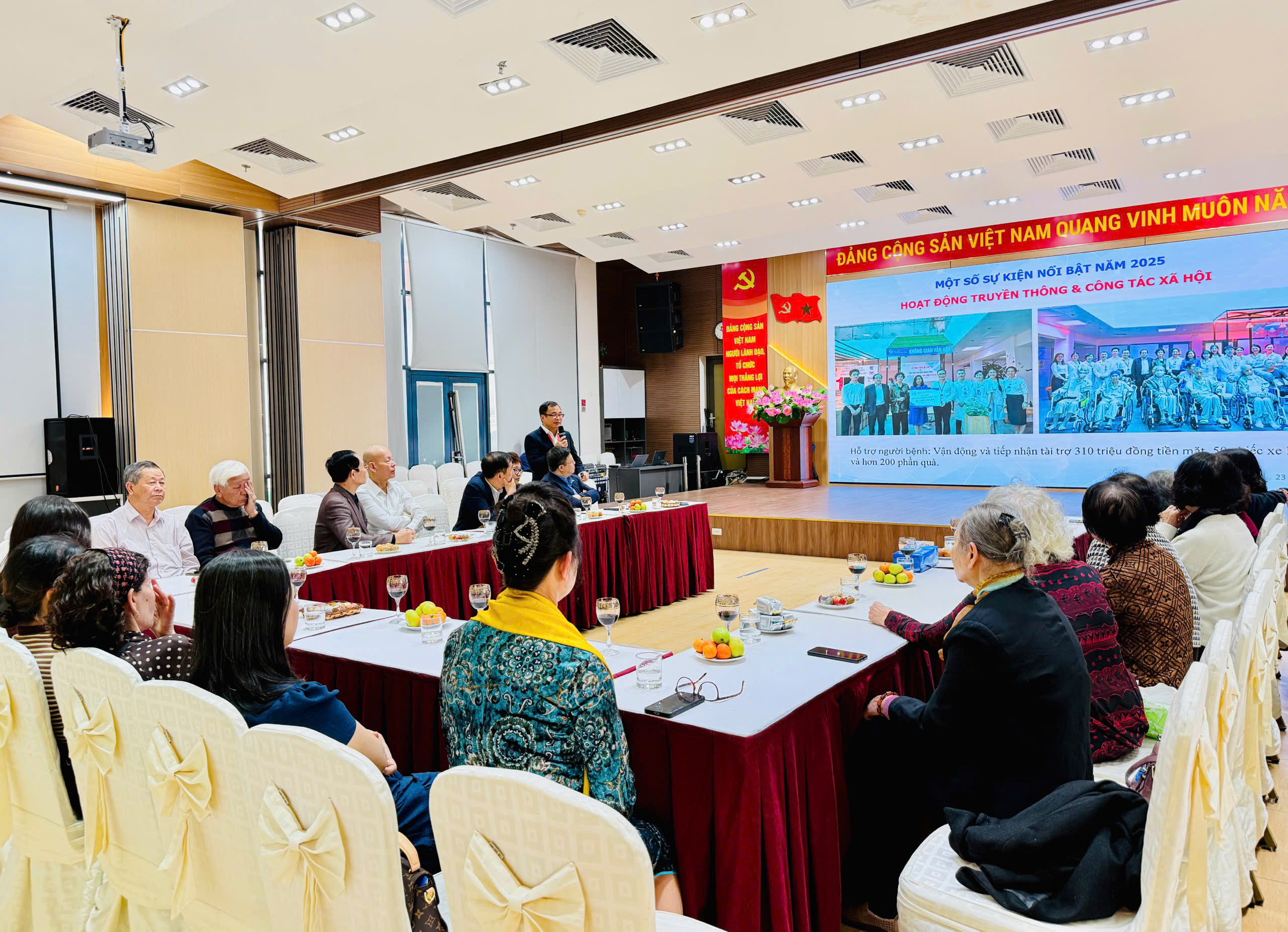 Phát biểu tại buổi gặp mặt, PGS.TS Nguyễn Trung Anh – Bí thư Đảng ủy, Giám đốc Bệnh viện Lão khoa Trung ương bày tỏ sự xúc động khi được đón tiếp các cán bộ, viên chức đã nghỉ công tác trở về thăm bệnh viện trong những ngày đầu năm mới. Ông nhấn mạnh: “Những bước phát triển đáng ghi nhận của bệnh viện ngày hôm nay chính là thành quả từ sự đóng góp, cống hiến không mệt mỏi của các cô, các chú và anh chị qua nhiều giai đoạn gian khó. Tập thể cán bộ, viên chức hiện nay cam kết sẽ tiếp nối vững vàng truyền thống ấy, không ngừng nỗ lực để đưa chuyên ngành Lão khoa phát triển mạnh mẽ và vươn xa hơn nữa. Bệnh viện sẽ luôn là điểm tựa tin cậy, là ngôi nhà ấm áp sẵn sàng chăm sóc và đồng hành cùng các cán bộ hưu trí trong mọi hoàn cảnh. Kính chúc các cô, các chú và anh chị một năm mới sức khỏe, bình an và luôn tự hào về sự phát triển của bệnh viện”.