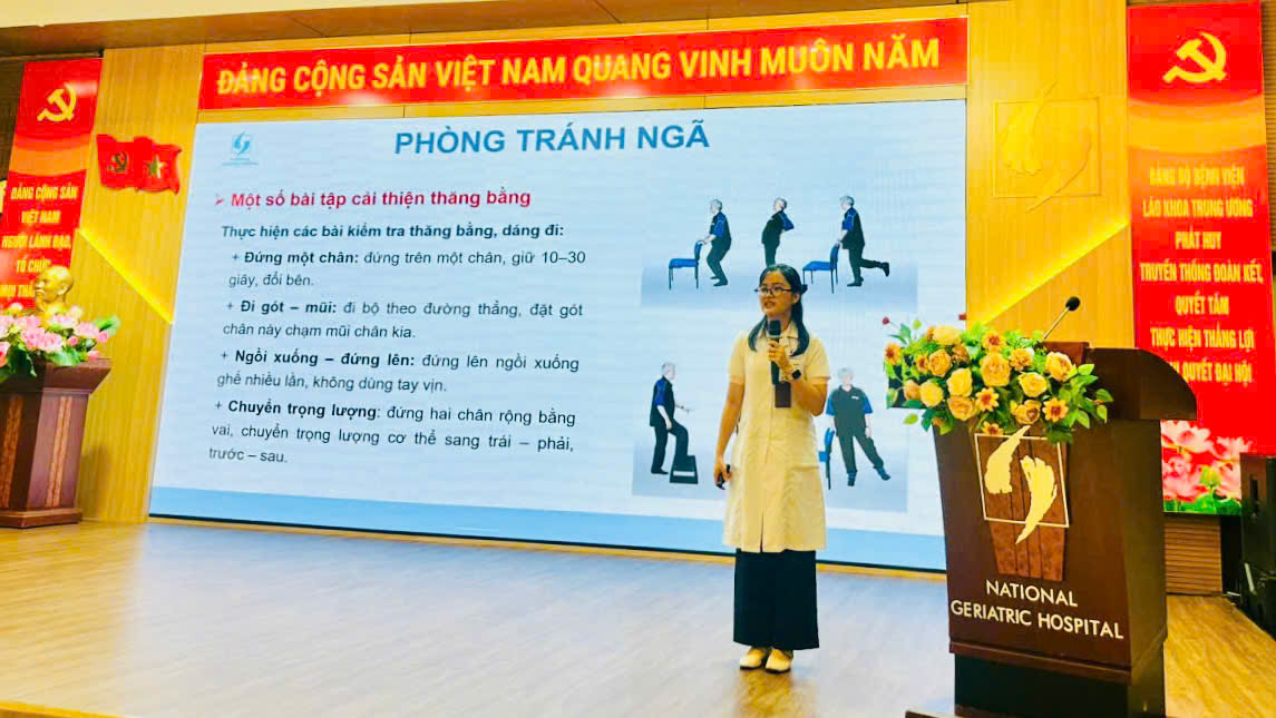 Chia sẻ tại sự kiện, TS.BS. Hà Thị Vân Anh – Trưởng khoa Khám bệnh, đơn vị được giao nhiệm vụ định kỳ tổ chức các buổi truyền thông giáo dục sức khỏe: “Lão hóa là quy luật tất yếu của đời sống. Chúng ta không thể níu giữ thời gian, nhưng có thể chủ động bước vào tuổi già khỏe mạnh. Điều đó cần sự đồng hành kiên nhẫn của gia đình, sự chăm sóc tận tâm của nhân viên y tế và sự gắn kết của cả cộng đồng.”