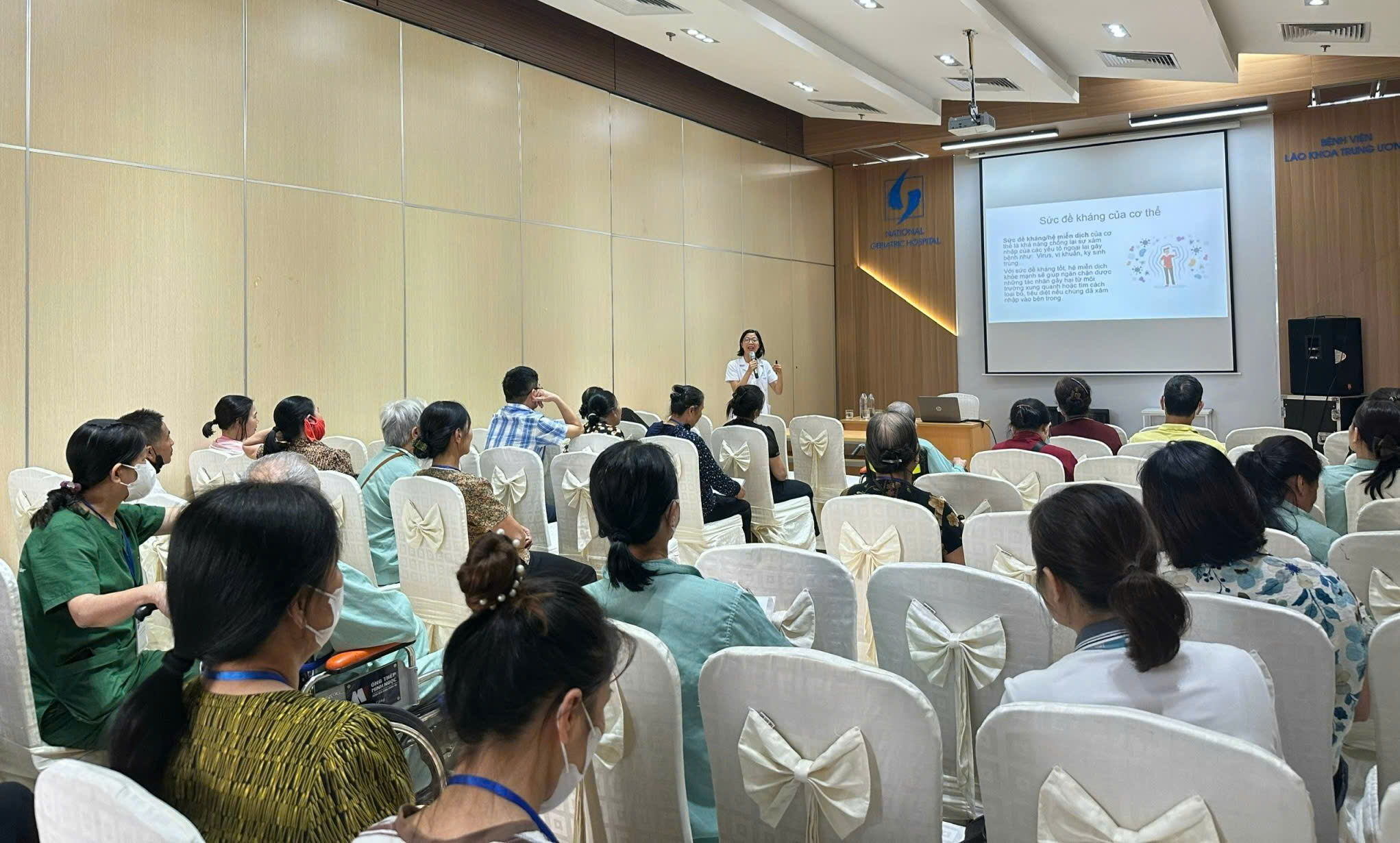 Song song đó, chuyên gia dinh dưỡng của bệnh viện cũng chia sẻ vai trò quan trọng của dinh dưỡng trong tăng cường sức đề kháng, đặc biệt là đối với người cao tuổi mắc bệnh mạn tính. Chế độ ăn cân bằng, đủ dưỡng chất, kết hợp lối sống lành mạnh giúp cải thiện sức khỏe toàn thân và hỗ trợ quá trình điều trị bệnh hiệu quả hơn.