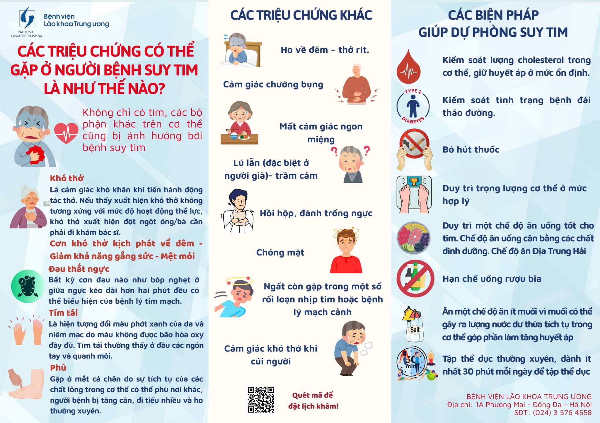 Phần tư vấn giáo dục sức khỏe được trình bày sinh động, dễ hiểu, giúp người bệnh và người nhà nắm bắt kiến thức cơ bản về bệnh suy tim, một trong những bệnh lý mạn tính phổ biến ở người cao tuổi. Người tham dự được hướng dẫn nhận biết các dấu hiệu sớm như: khó thở, mệt mỏi, phù chân, đau tức ngực, chóng mặt hay hồi hộp đánh trống ngực; đồng thời được cung cấp các biện pháp dự phòng hữu ích như duy trì chế độ ăn giảm muối, kiểm soát huyết áp, hạn chế rượu bia, bỏ thuốc lá, tập thể dục thường xuyên và theo dõi sức khỏe định kỳ.