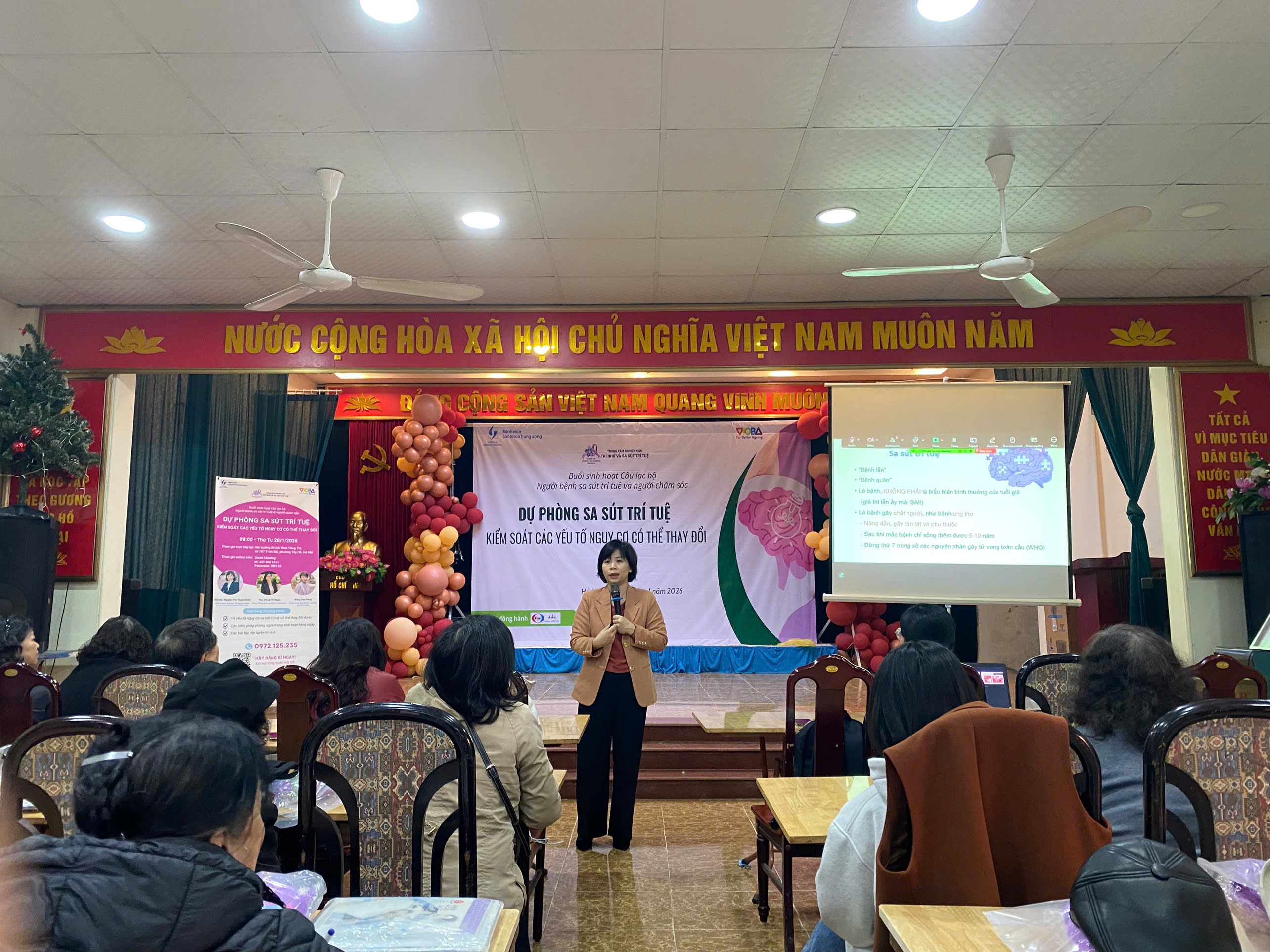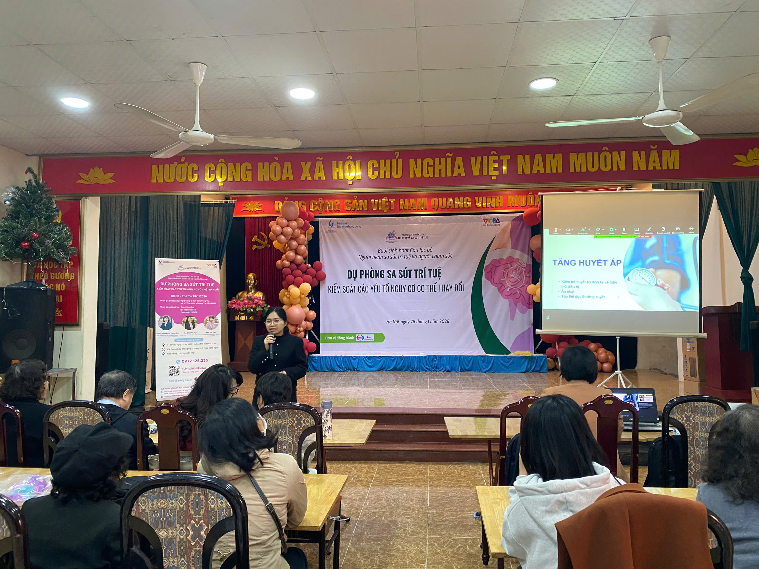Sáng ngày 28/01/2026, tại Hội trường Di tích Đình Võng Thị (phường Tây Hồ, Hà Nội), Bệnh viện Lão khoa Trung ương đã tổ chức buổi sinh hoạt Câu lạc bộ Người bệnh sa sút trí tuệ và Người chăm sóc với chủ đề “Dự phòng sa sút trí tuệ – Kiểm soát các yếu tố nguy cơ có thể thay đổi”.