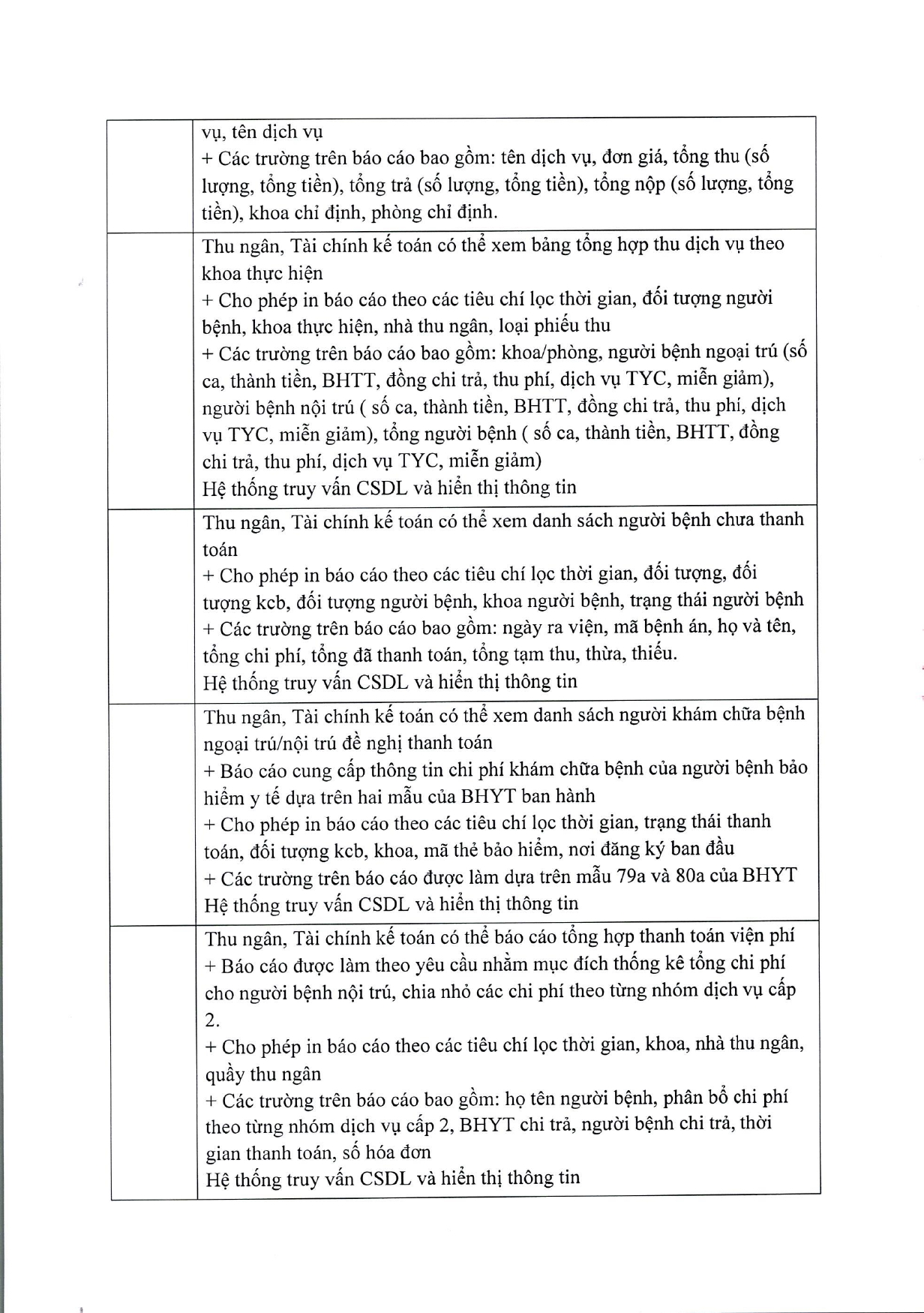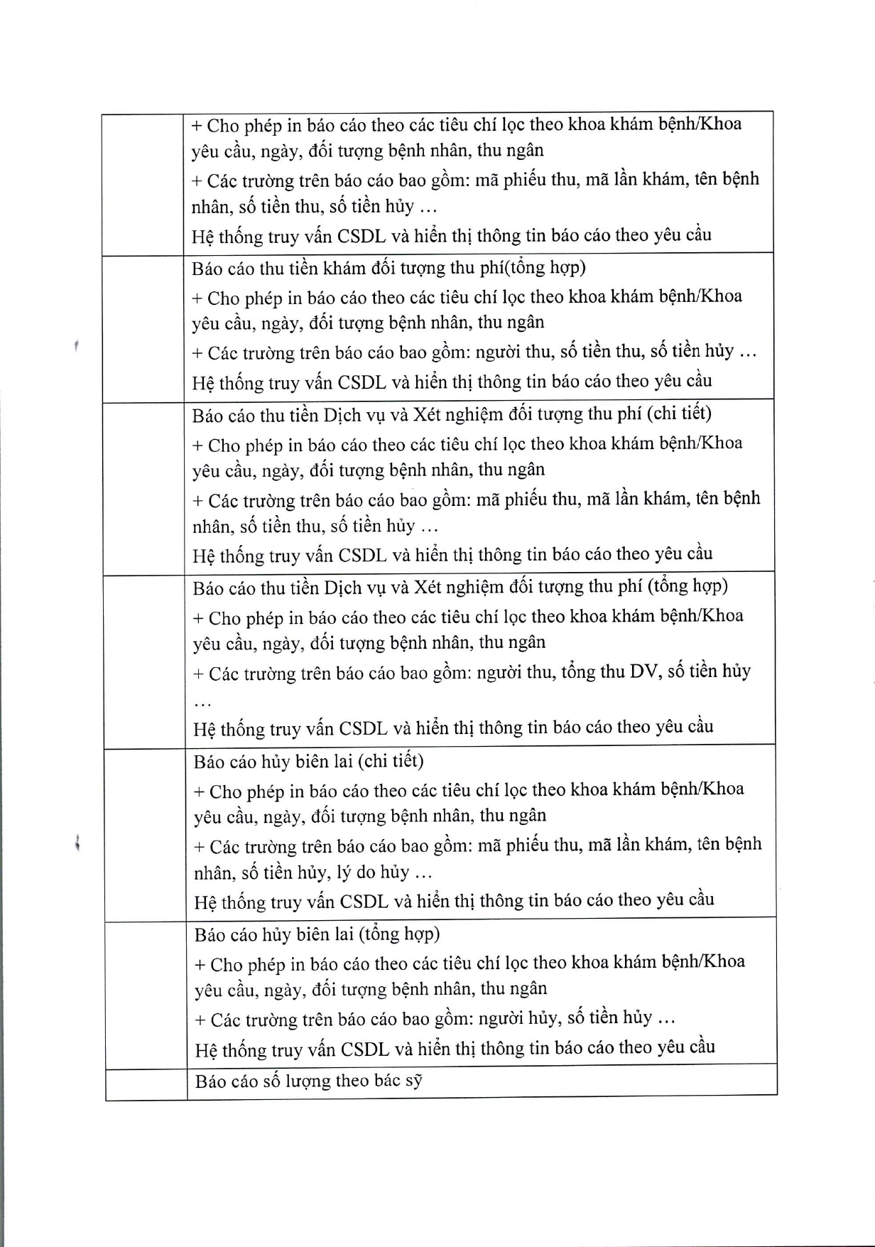 Bảng giá thu viện phí